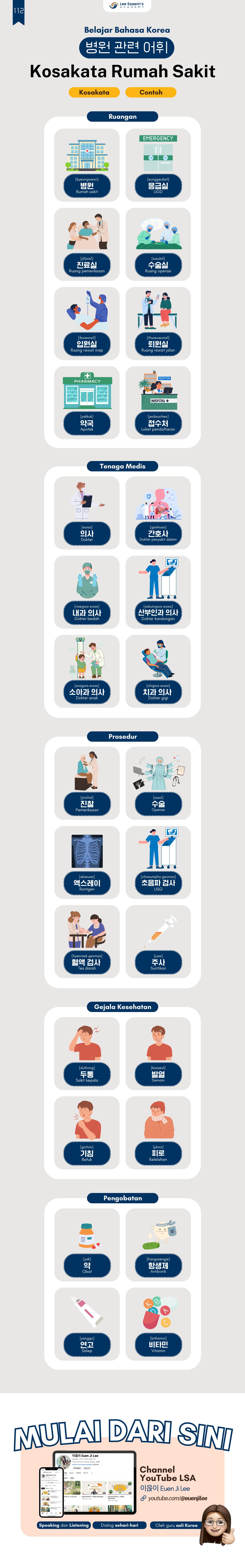 Leave a Comment / Beginner, Step 7 / By Lee Ssaem's Academy Kosa Kata Rumah Sakit 한국 병원 Percakapan ke Rumah Sakit Korea Share this: Click to share on Facebook (Opens in new window) Facebook Click to share on X (Opens in new window) X Like this:Like Loading...